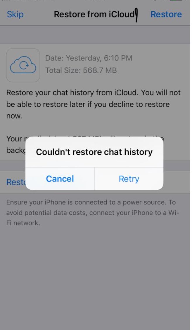 Whatsapp Restore From Icloud Fails On Iph Apple Community